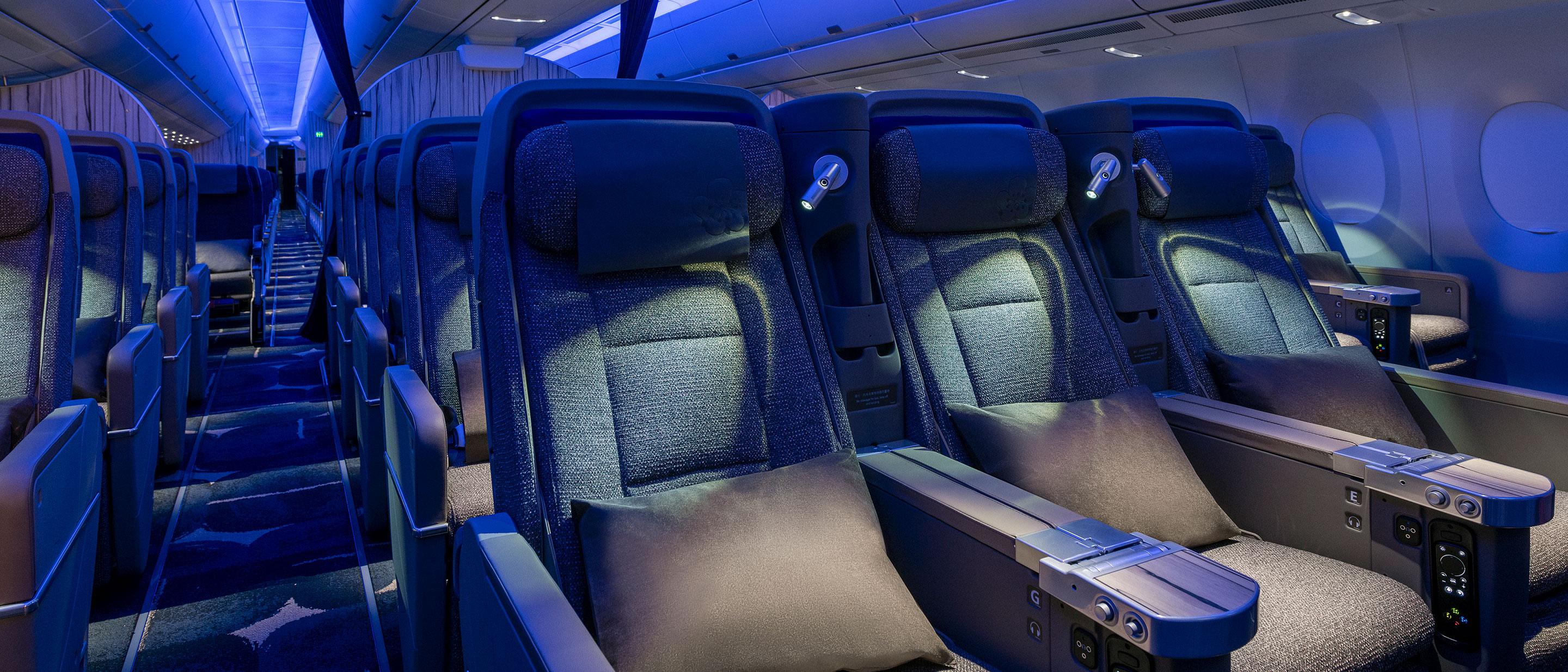 การผสมผสานระหว่างสุนทรียศาสตร์แบบตะวันออกและเทรนด์สมัยใหม่ ชั้นประหยัดพรีเมียมที่มีสไตล์และสะดวกสบาย ช่วยให้คุณมั่นใจได้ว่าจะได้รับประสบการณ์การบินที่เหนือระดับ